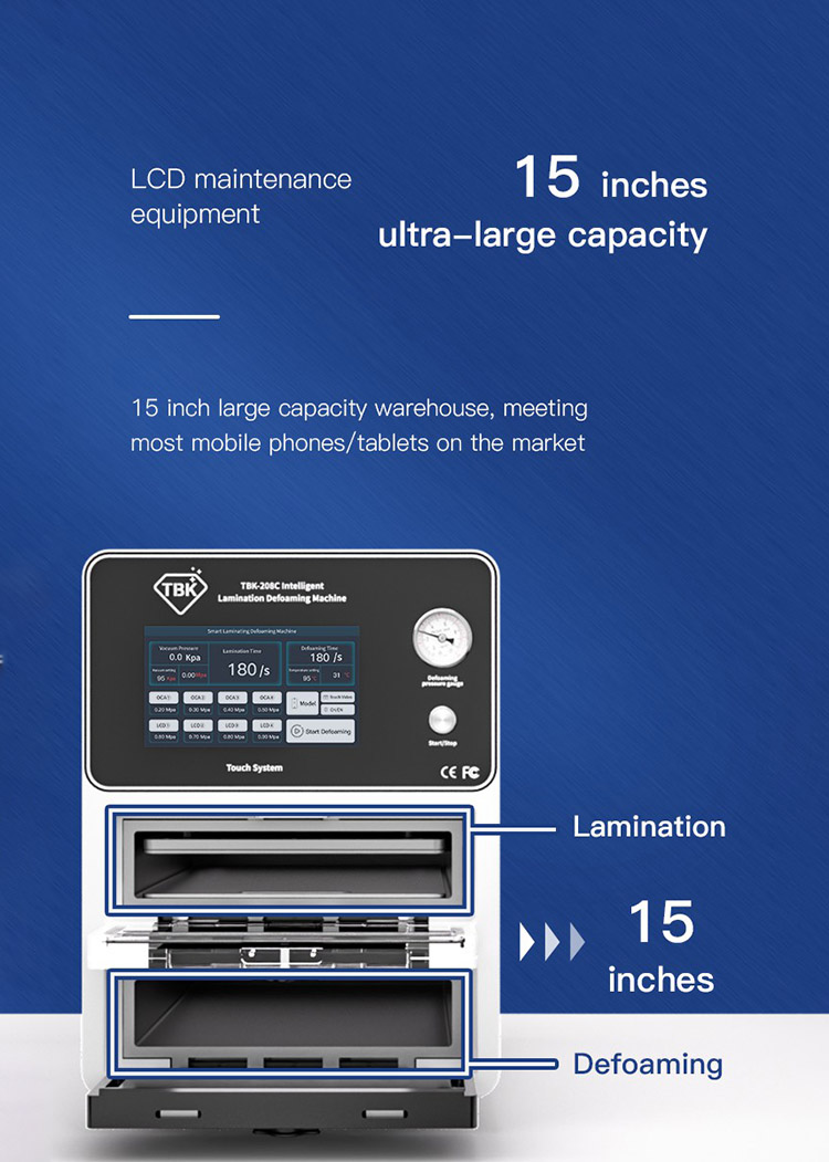 TBK 968D 19-Inch 2-in-1 LCD Separation Machine. The TBK-968D is a 2-in-1 vacuum separator designed for mobile phone and tablet screen repair. It features an expansive 19-inch work area, making it..