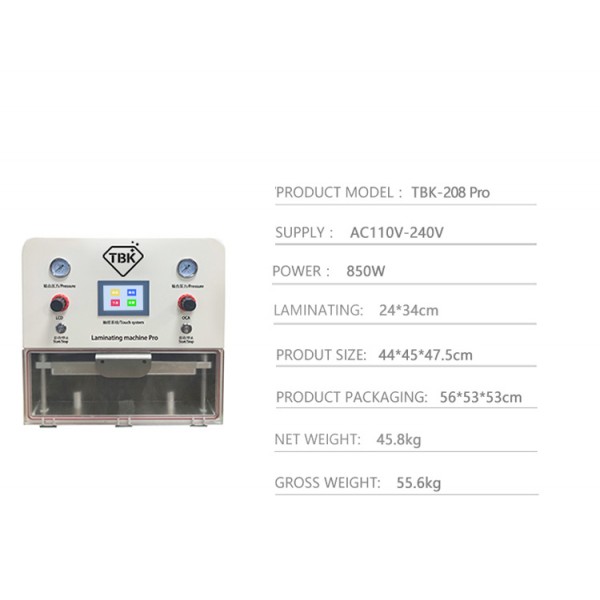 TBK-208 Pro Universal Vacuum OCA Laminating Machine Big Size PLC for iPad iPhone Samsung for Xiaomi Phone Repair.