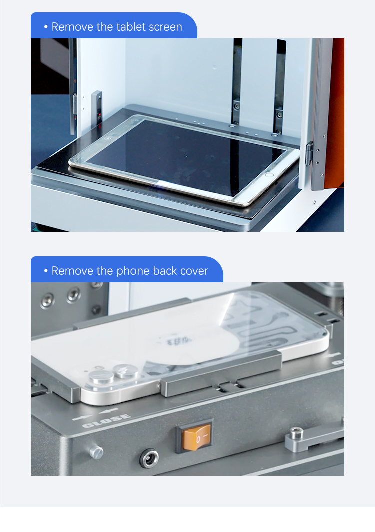 2-in-1 screen electric separator TBK 958D LCD screen automatic separator Air-suction. Electric tablet separator, supports the separation of mobile phones and tablets. There are suction cups on bo..