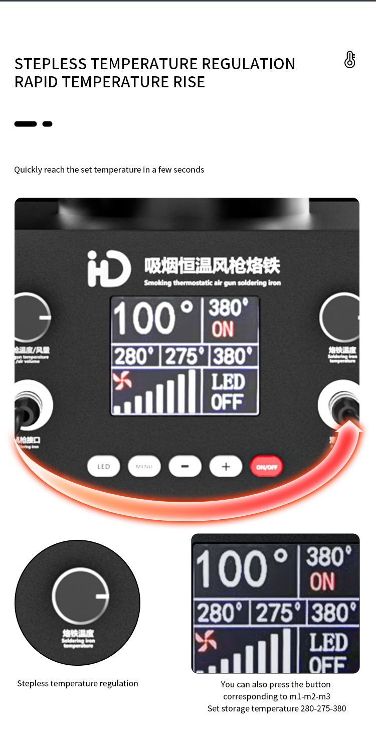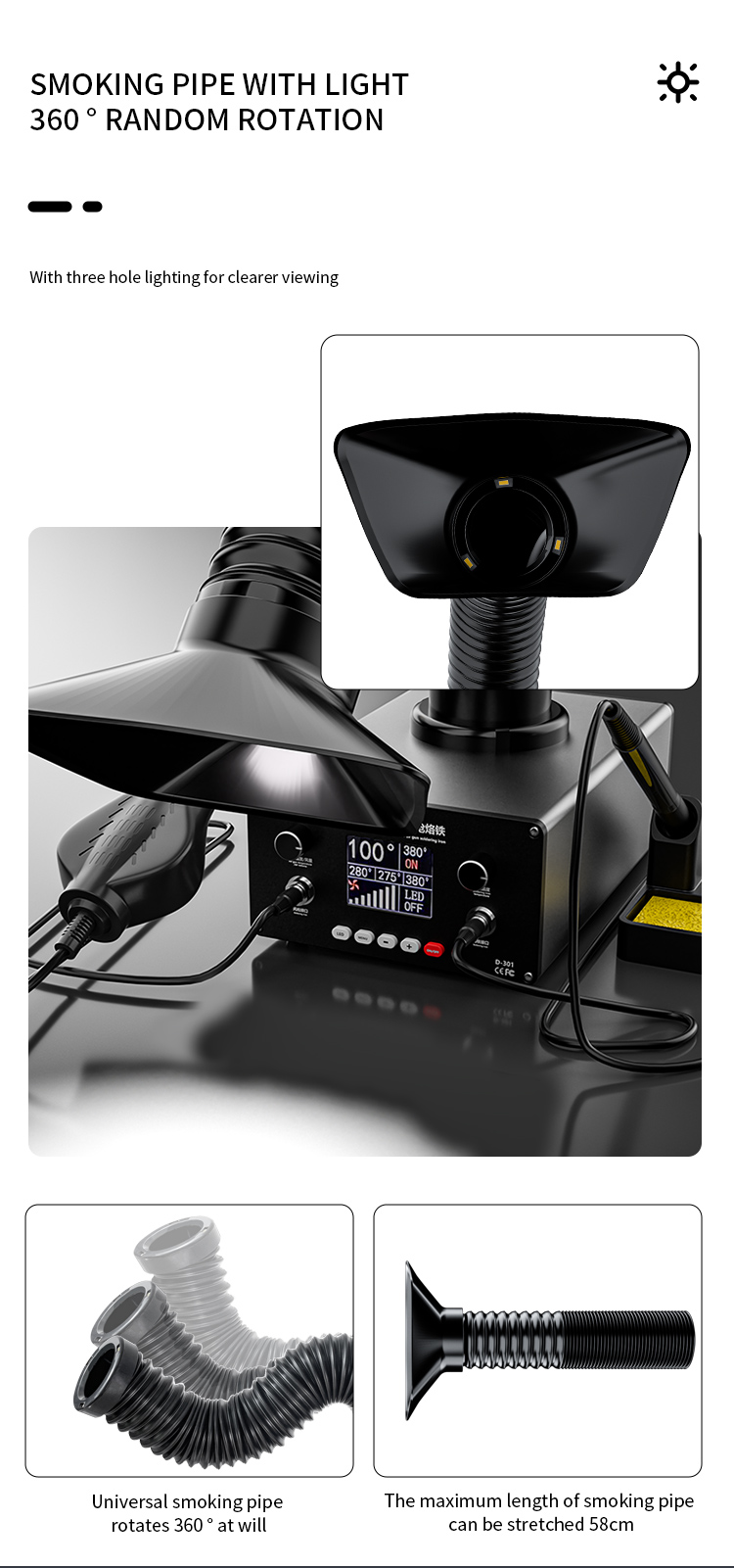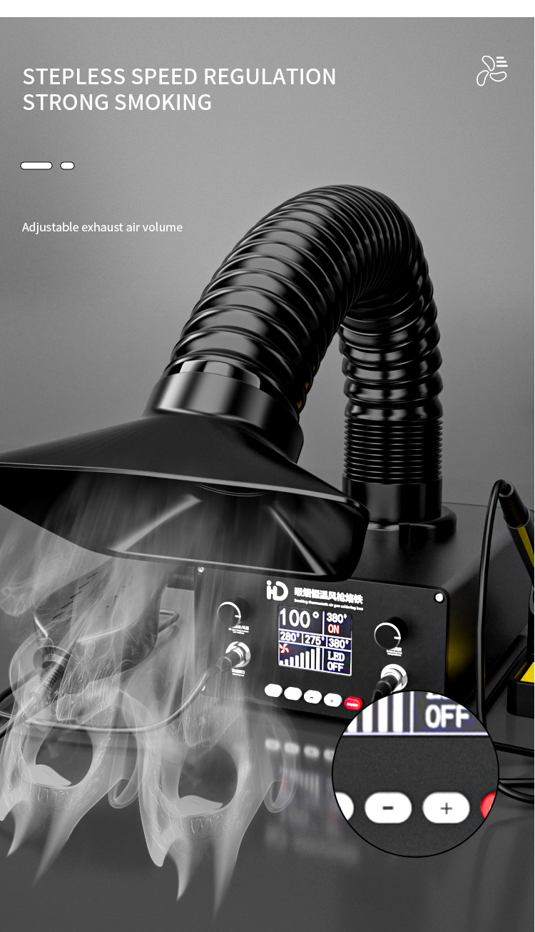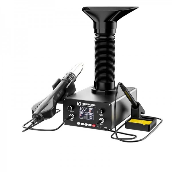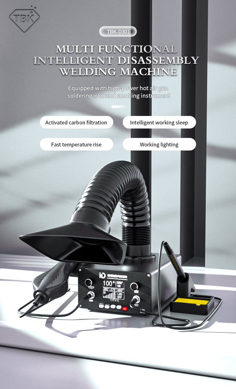 TBK D301 Intelligent Soldering Station with Hot Air Gun and Built-in Smoke Absorber.