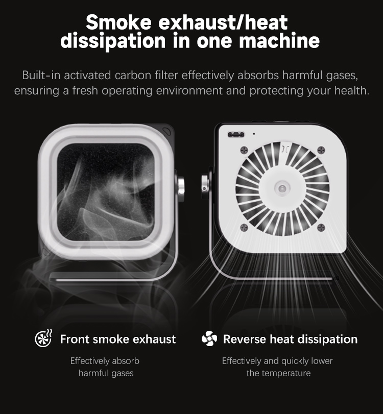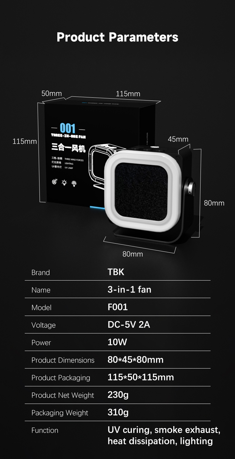 TBK F001 3-in-1 Soldering Fume Extractor Fan with UV Curing Lamp & Cooling for Electronics Repair.